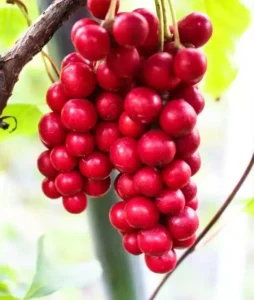 Плід — циліндрична або грушоподібна червона соковита кістянка. Плоди достигають у серпні — вересні.