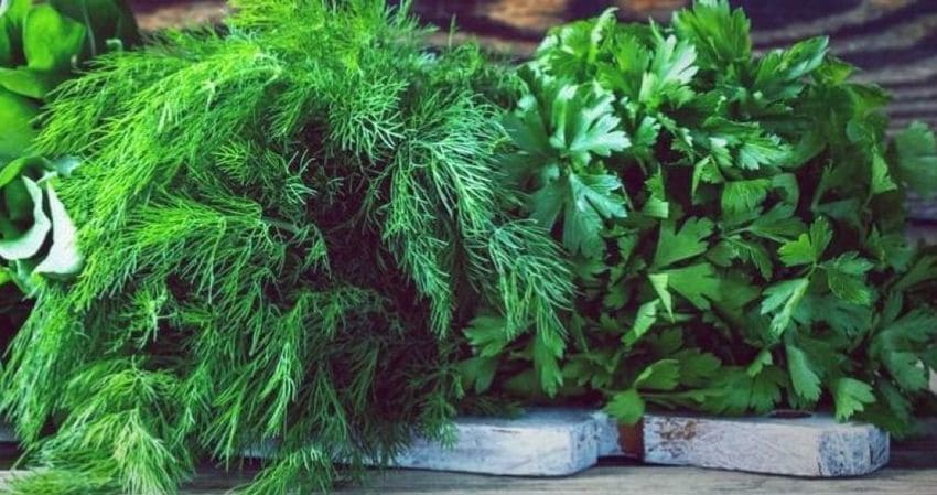 Зелену цибулю миють, очищають, відрізають кореневу мичку і кінці зелених стебел, потім нарізають шматочками довжиною 1-2 см. Кріп перебирають, миють і дрібно нарізають.