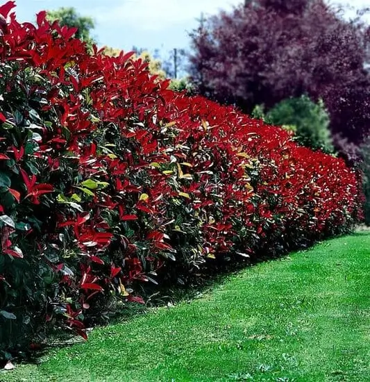 Фотинія (Red Robin) підходить тим, хто хоче не просто зелену огорожу, а декоративну. Молоде листя має яскраво-червоний колір, що додає виразності всьому двору.